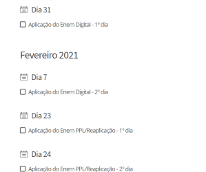 Já a reaplicação das provas está marcada agora para os dias 24 e 25 de fevereiro, e os resultados serão divulgados no dia 29 de março. Segundo o presidente do Inep, serão adotadas medidas sanitárias durante a aplicação das provas, como uso de álcool gel e distanciamento adequado entre os estudantes.