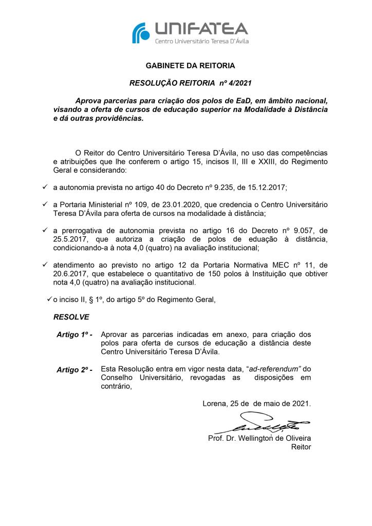 RESOLUÇÃO REITORIA nº 4/2021 Aprova parcerias para criação dos polos de EaD, em âmbito nacional. maio 27, 2021 Navegação de Post Anterior Post anterior: Pobreza menstrual: com apoio de instituições lorenenses, rede de apoio às mulheres mobiliza arrecadação de produtos de higiene pessoal femininaPróximo Próximo post: Seminários colaborativos com a temática “Design como estratégia para o desenvolvimento de soluções” Deixe uma respostaCancelar resposta Este site utiliza o Akismet para reduzir spam. Saiba como seus dados em comentários são processados.