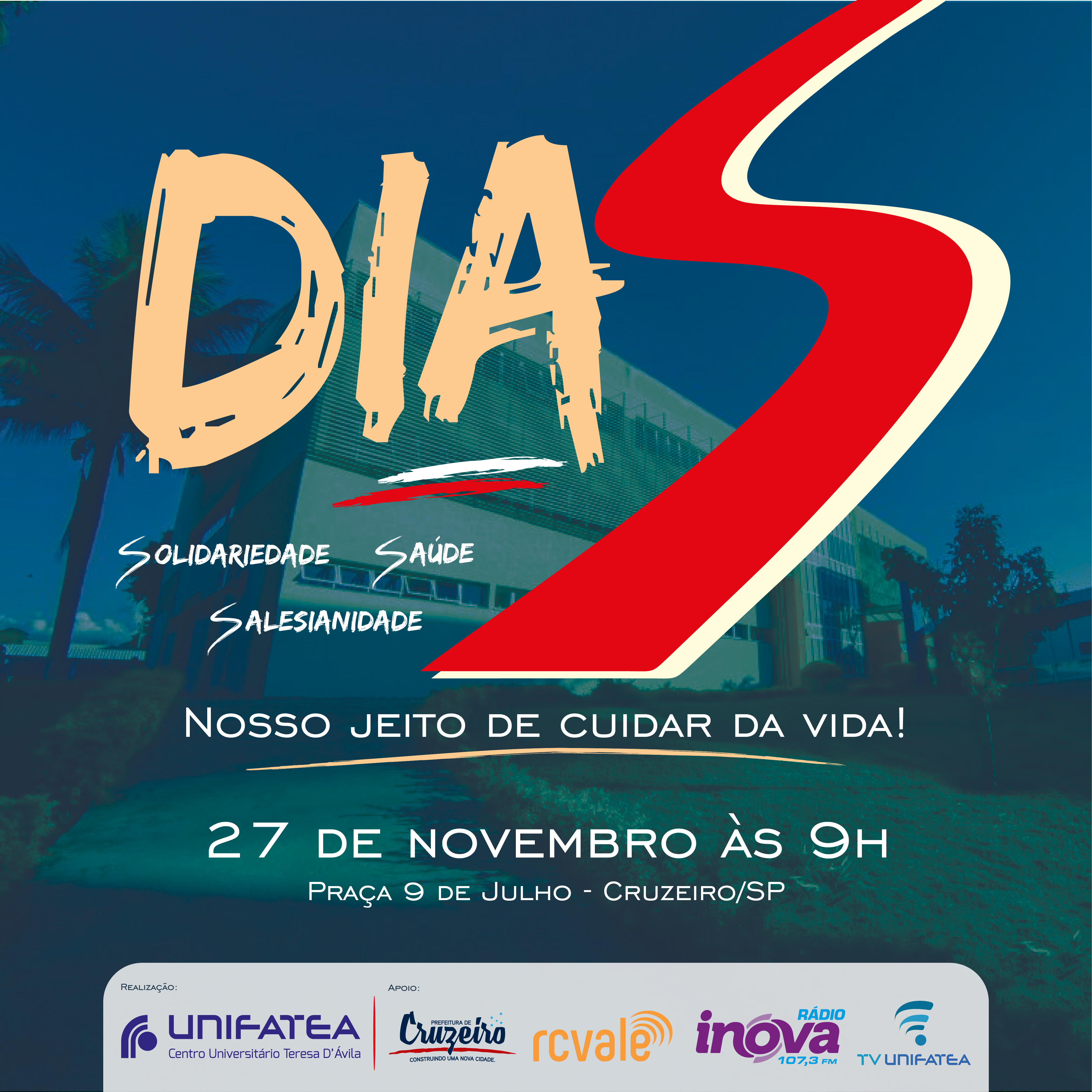 O Dia S tem como proposta promover o conjunto de valores e princípios que fundamentam a práxis do UNIFATEA. Com a chamada: “Nosso jeito de cuidar da vida”, o UNIFATEA convida a população a fazer parte de um instante que oportunize e sensibilize a repensar o valor da nossa existência neste mundo.