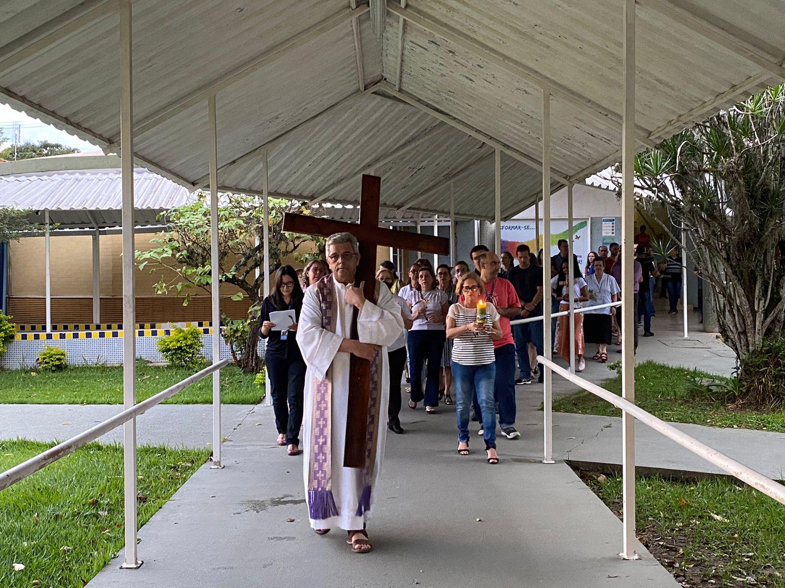 Nossos colaboradores também participaram de uma dinâmica que permitiu exemplificar a pureza e a luz do espírito. Pe. Pedro Cunha nos lembrou da importância da Semana Santa, reforçando que este é um tempo em que celebramos a paixão, morte e ressurreição de Jesus.