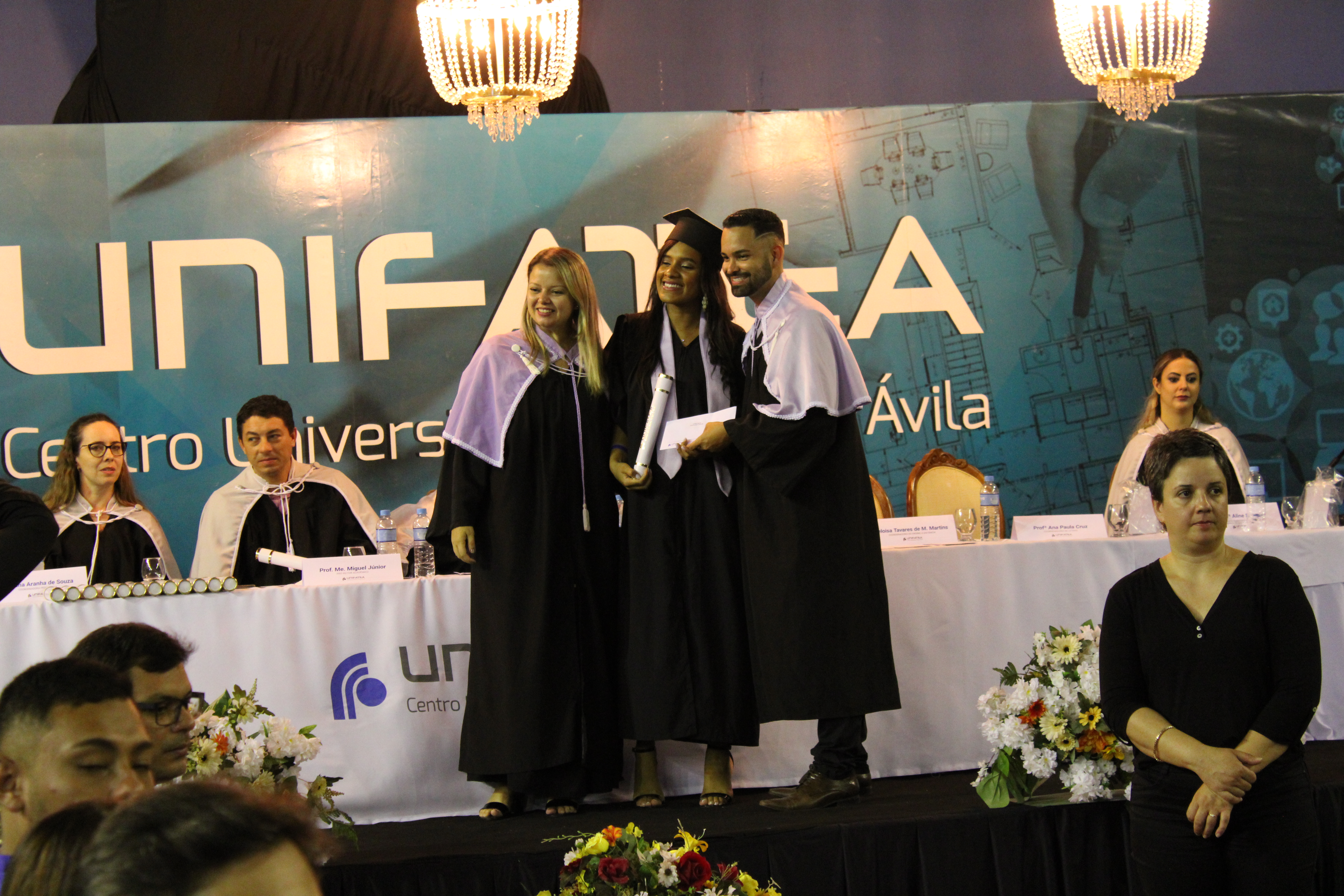 A noite ainda reservou homenagens dos alunos para os professores, e também o Juramento Oficial. E o momento mais aguardado ficou para o fim, a entrega dos canudos com certificado de conclusão do curso. Antes do encerramento, o Centro Universitário Teresa D’Ávila – Unifatea entregou o Mérito Acadêmico como forma de reconhecer o bom desempenho alcançado ao longo do curso, sua determinação e diferença. Parabéns a todos pela conquista e honraria. Confira os alunos vencedores e as fotos desse momento especial.