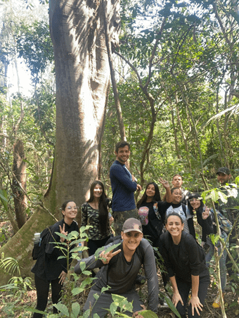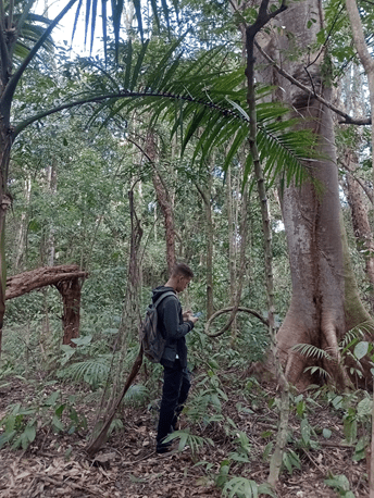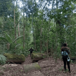 Após a passagem pelo CETAS, caminhamos pela FLONA, passando por diferentes formações vegetais da unidade. O objetivo principal era a observação de caracteres botânicos das espécies, variação de formas, texturas, cores e tamanhos de estruturas vegetais. Para além disso, o Professor ainda explanou sobre a configuração e o histórico da Unidade de Conservação, além de trazer noções sobre as inúmeras paisagens da Mata Atlântica presentes no Vale do Paraíba.