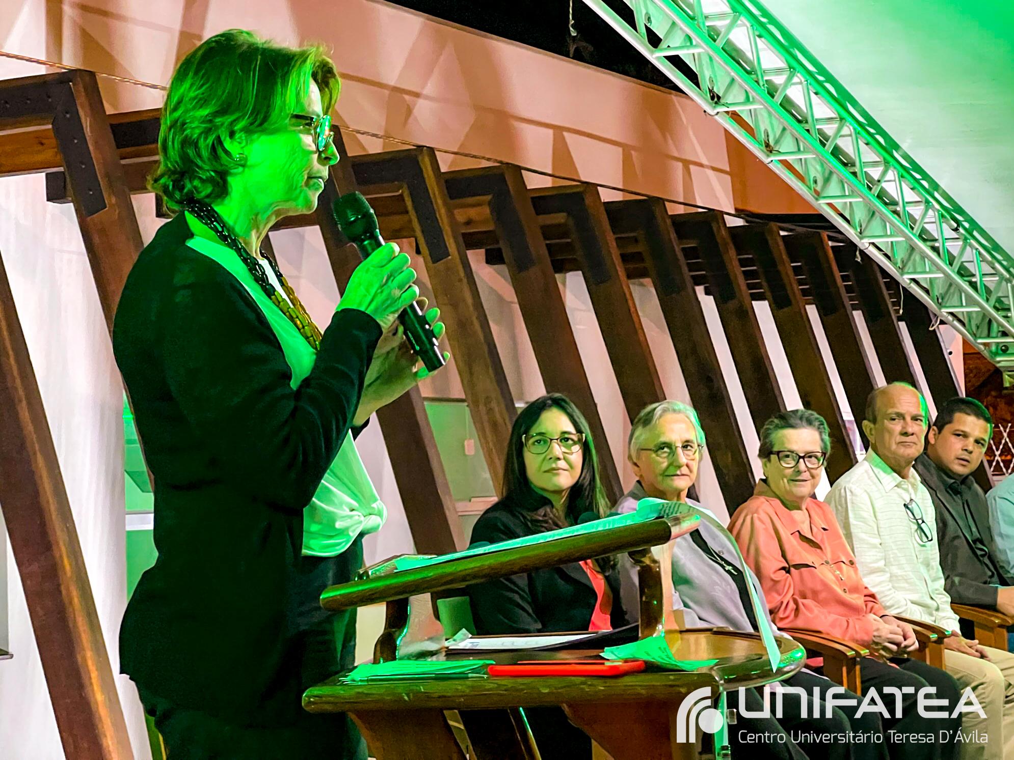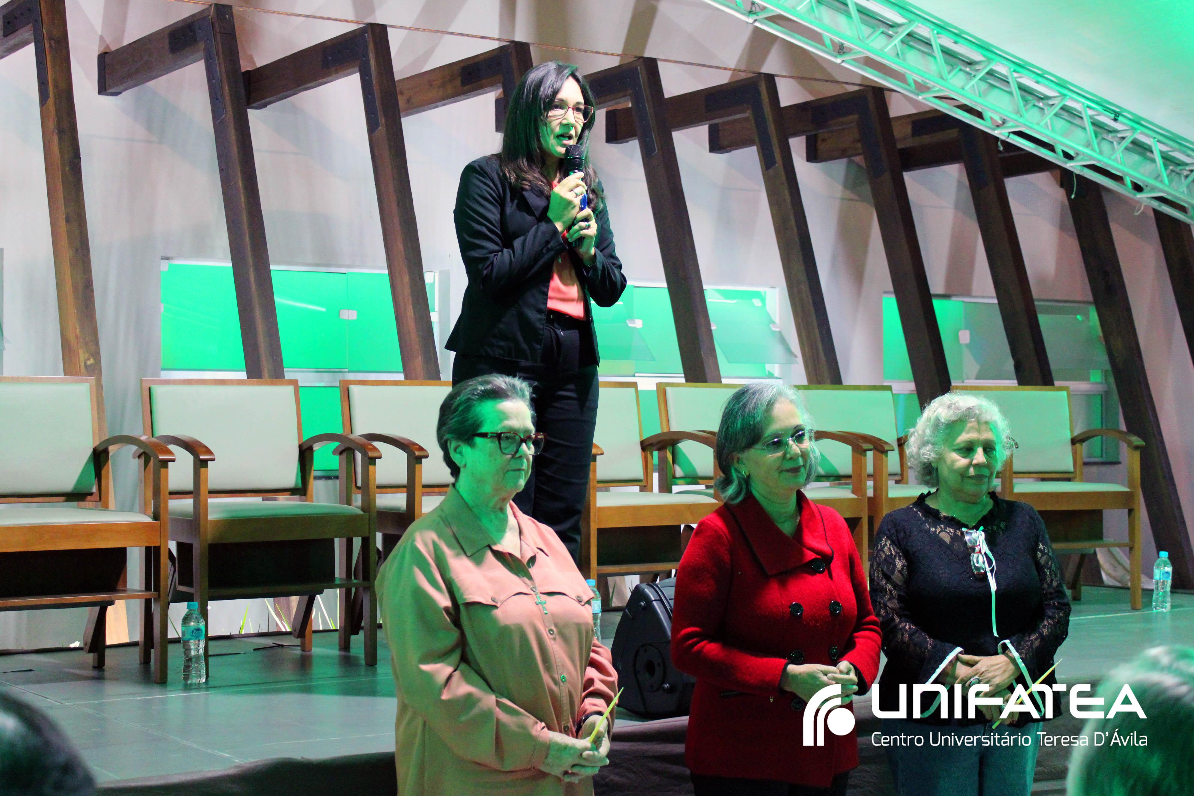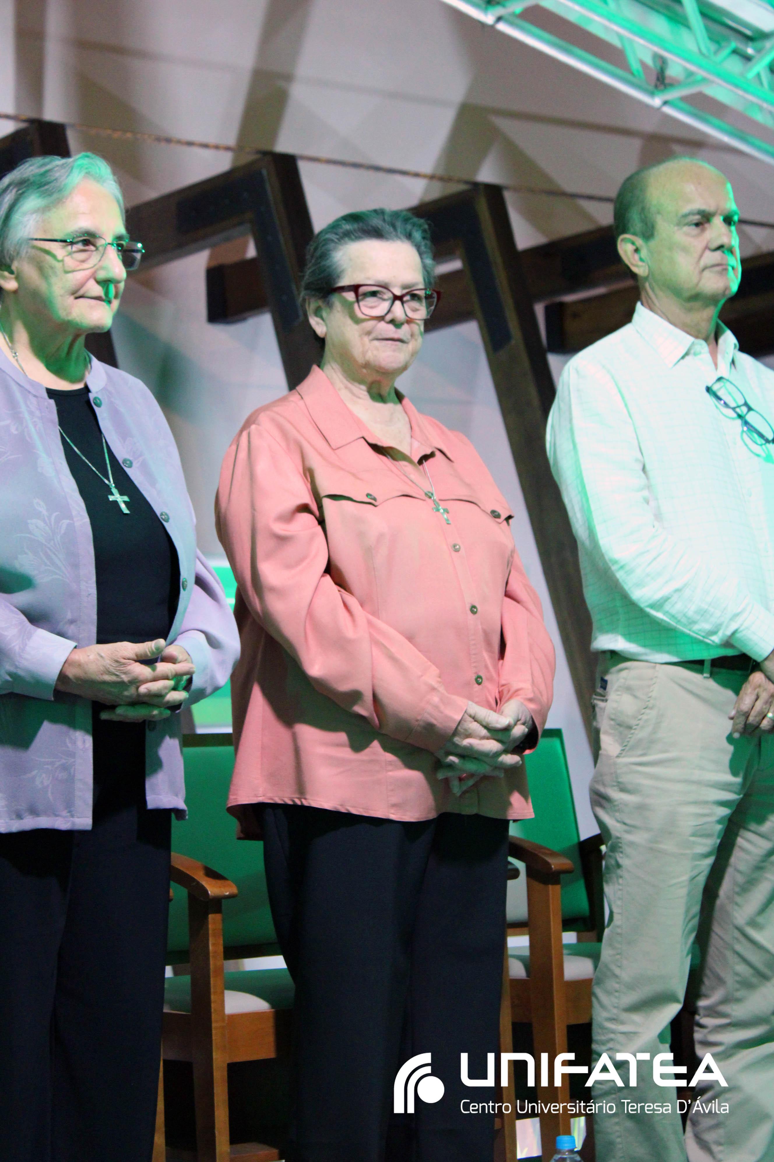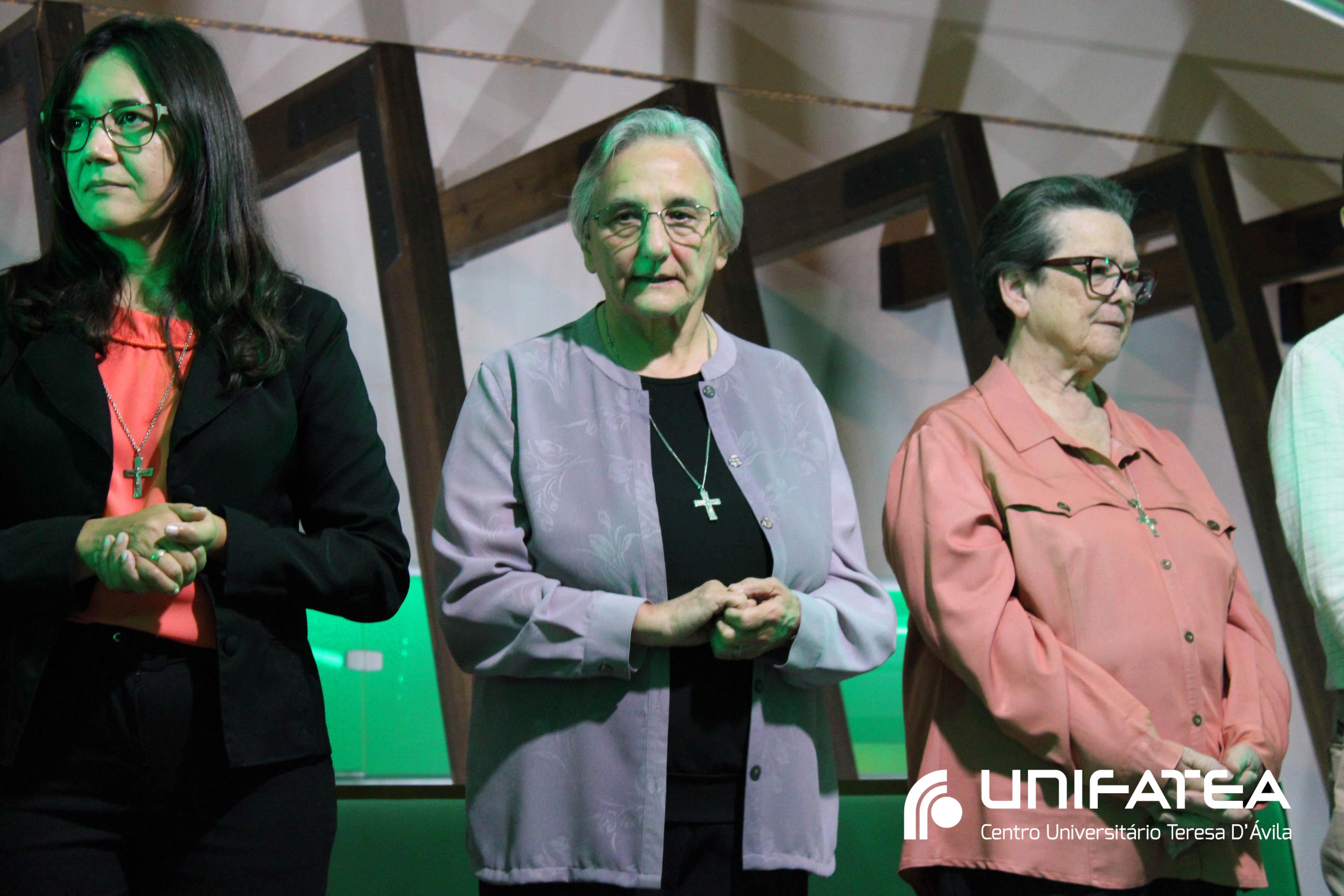 Buscando resgatar a memória histórica da enfermagem no Centro e o empenho no cuidado humanizado oferecido na clínica-escola, a cerimônia teve início com o momento das luzes. Uma tocha representando o cuidado e a vida, acima de tudo, foi acesa por mulheres que fizeram história na Clínica-escola: professora Regina Célia, quem iniciou o projeto do Ambulatório de Enfermagem, Irmã Célia, Filha de Maria Auxiliadora lembrando o trabalho das religiosas e de irmã Olga quem dirigia o Unifatea no período, e professora Ana Beatriz, coordenadora do curso de enfermagem e que participou das diferentes fases da Clínica-escola.
