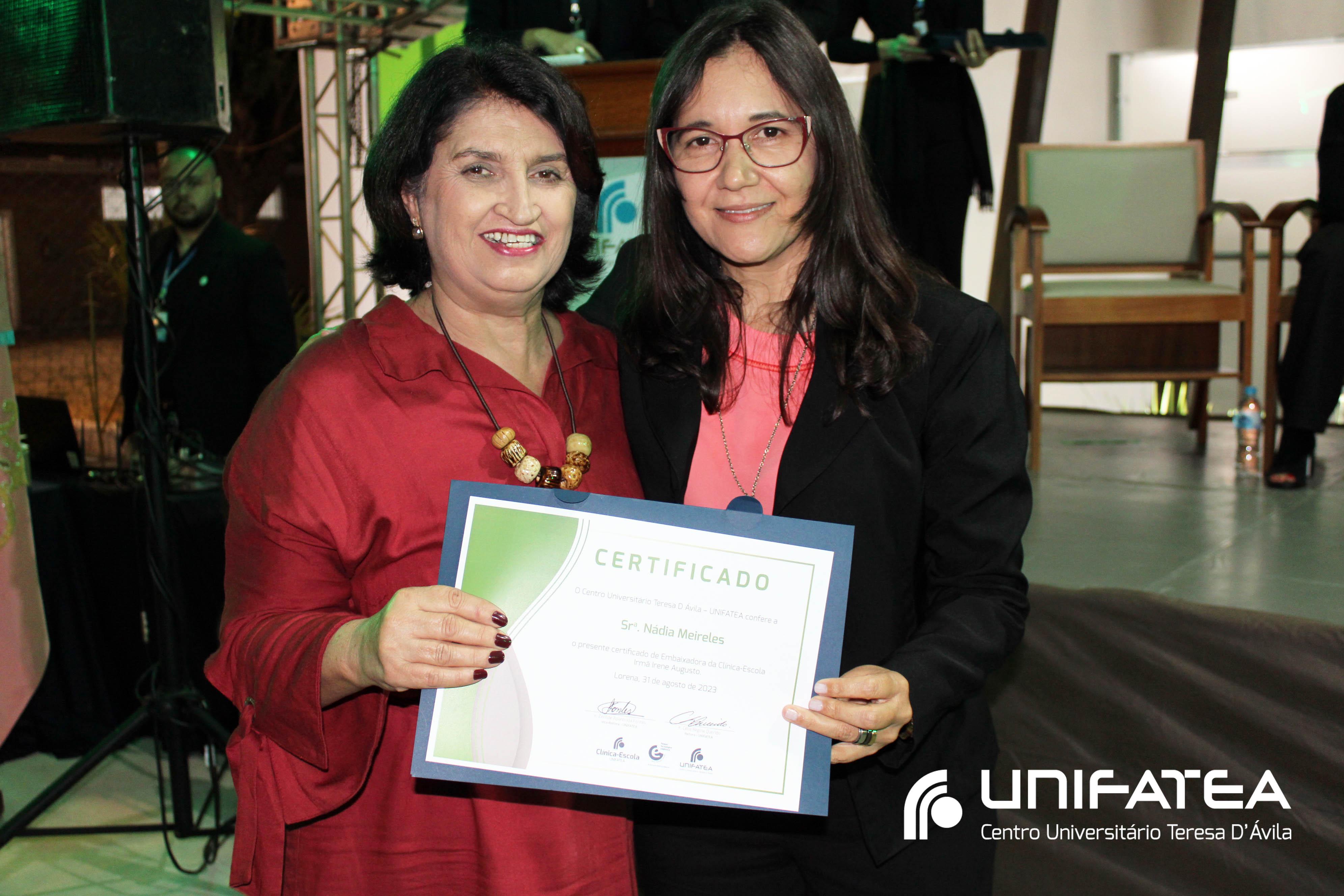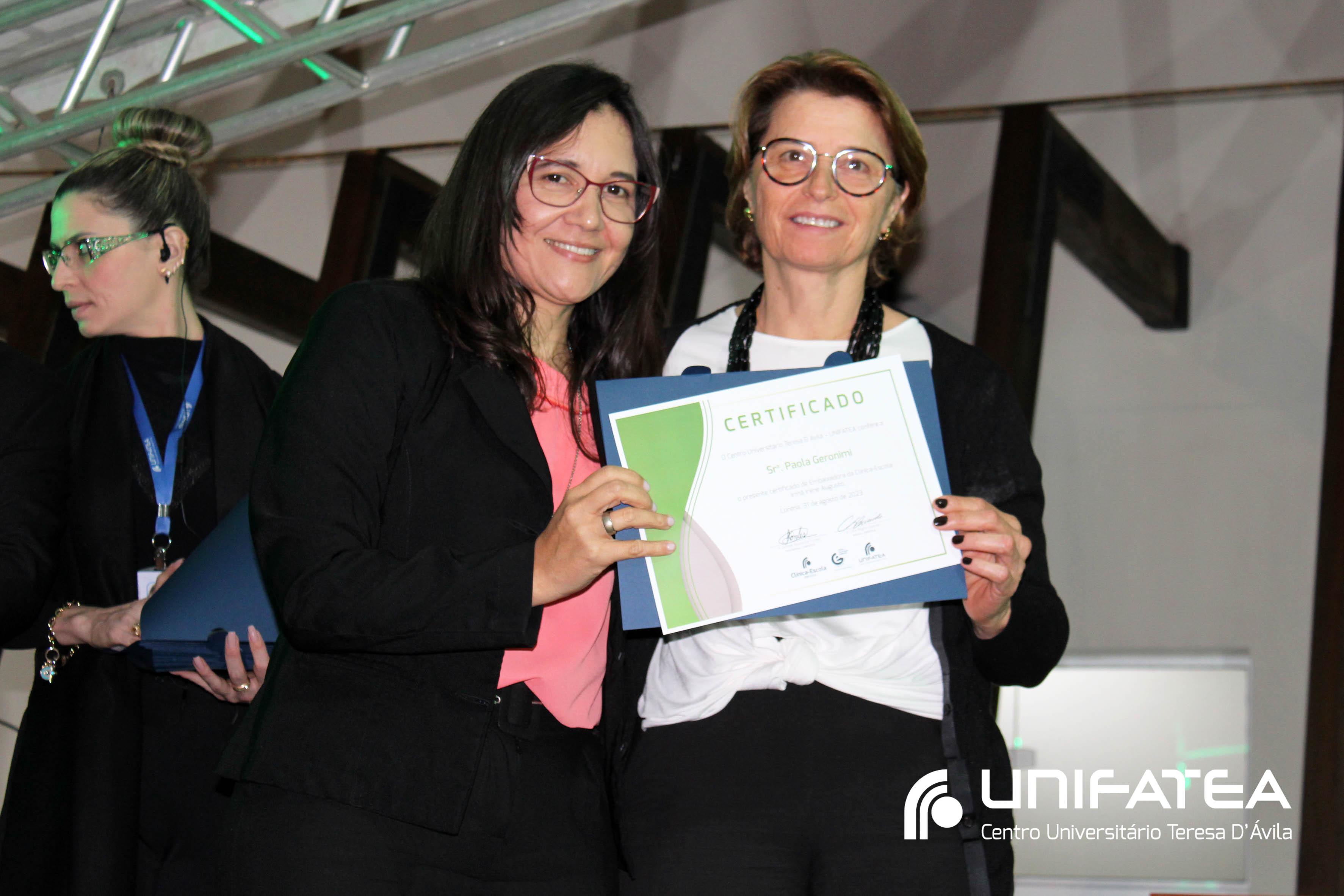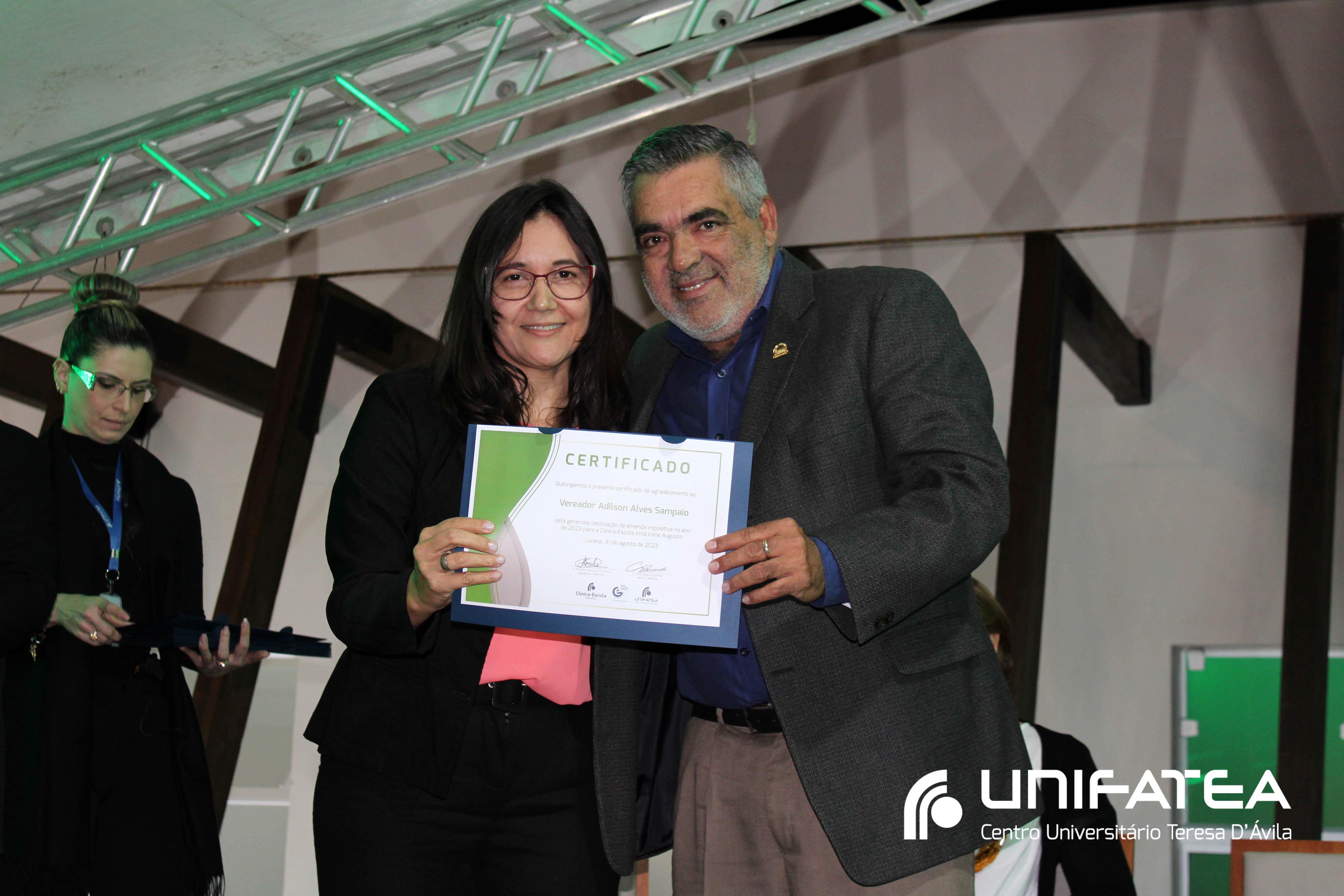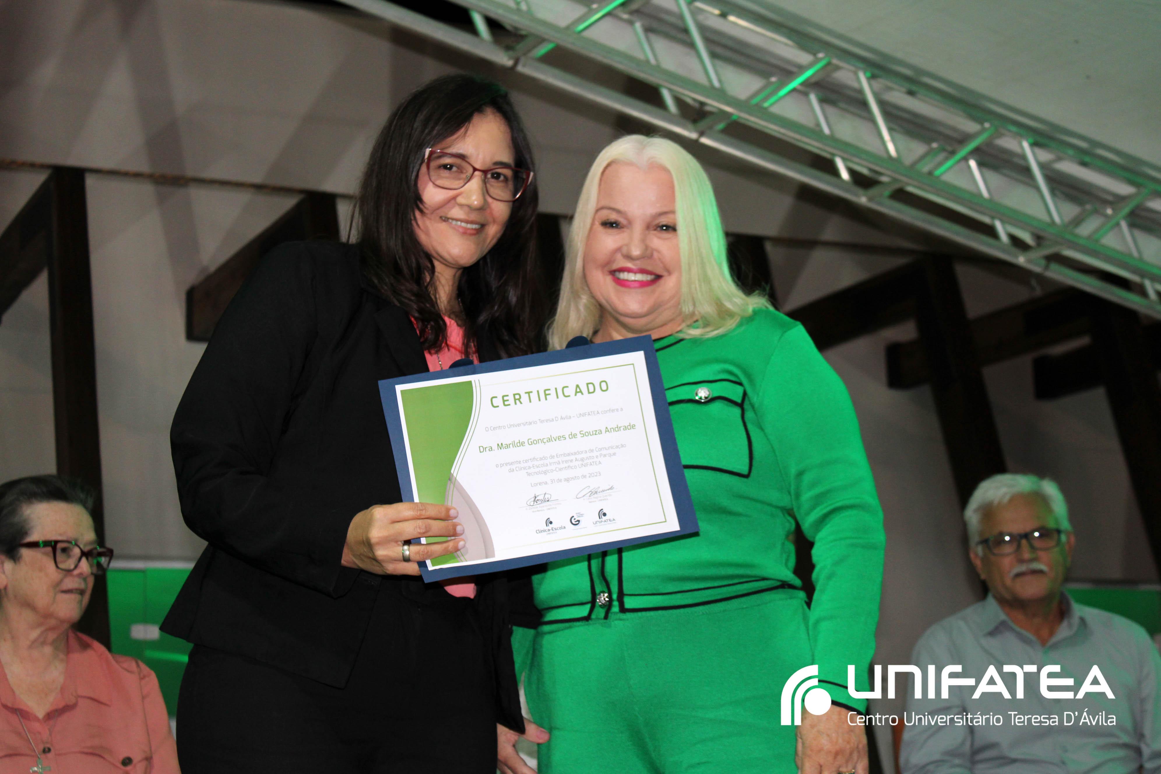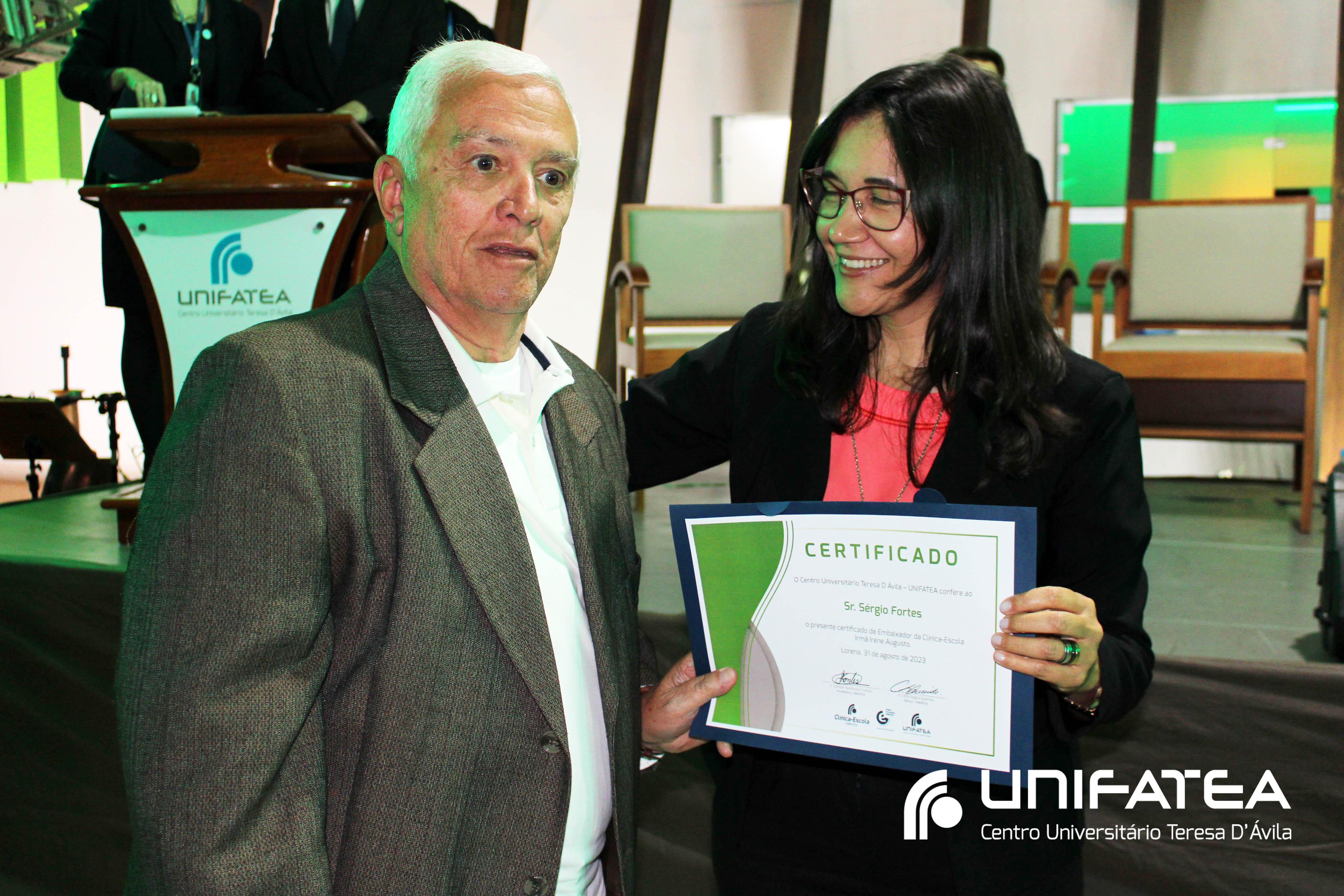 Foram entregues certificados Embaixadores da Clínica-escola para Sr. Sérgio Fortes, Sra. Nádia Meireles, Sra. Paola Geronimi; Certificados Embaixadores de Comunicação da Clínica-escola Irmã Irene Augusto e Parque Tecnológico Unifatea para Dra. Marilde Gonçalves de Souza Andrade – Rádio Mix FM e Sr. Eder Bilotta – Jornal Atos; Certificado Embaixador do Parque Tecnológico Unifatea para o empresário Jeremias Rodrigues.
