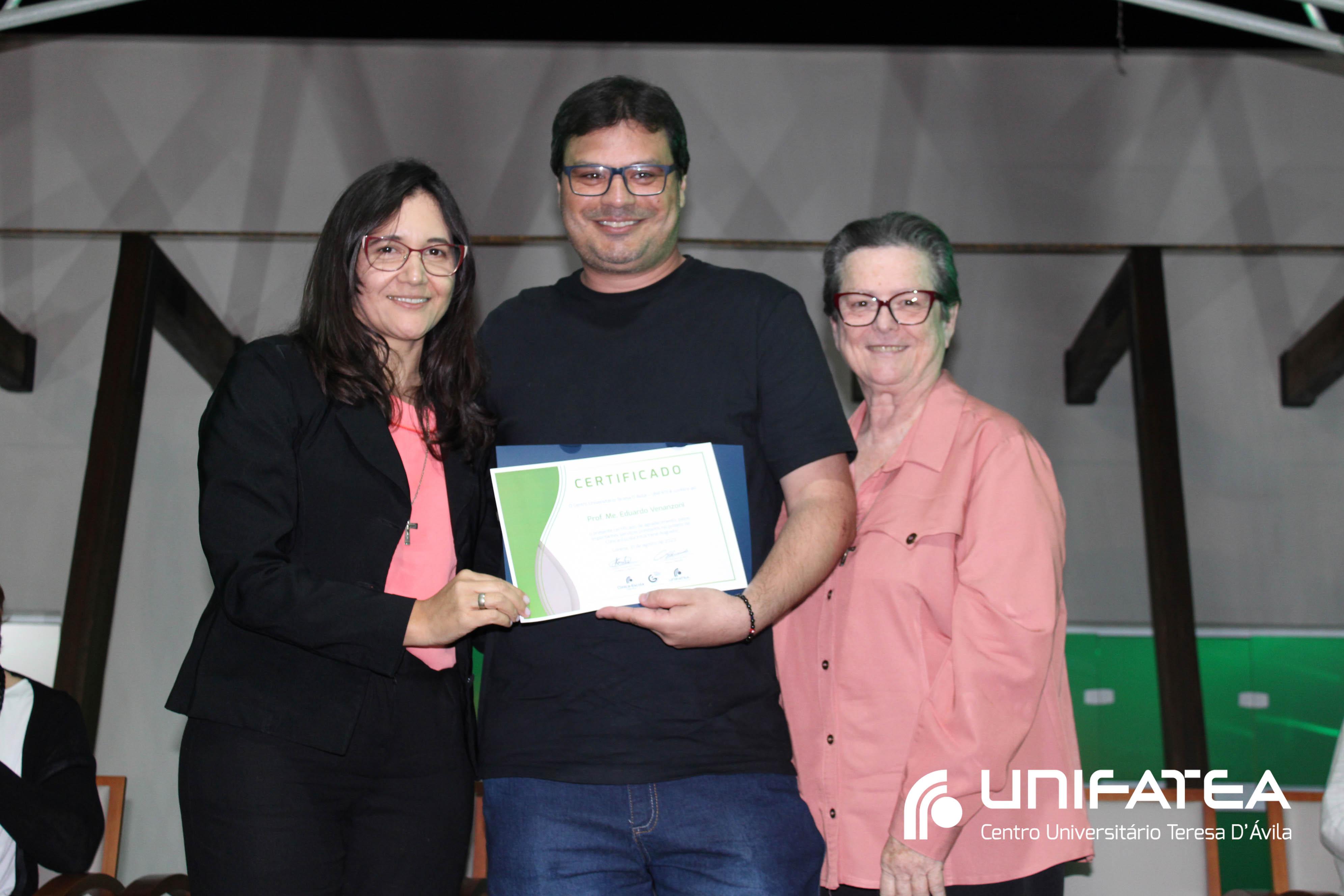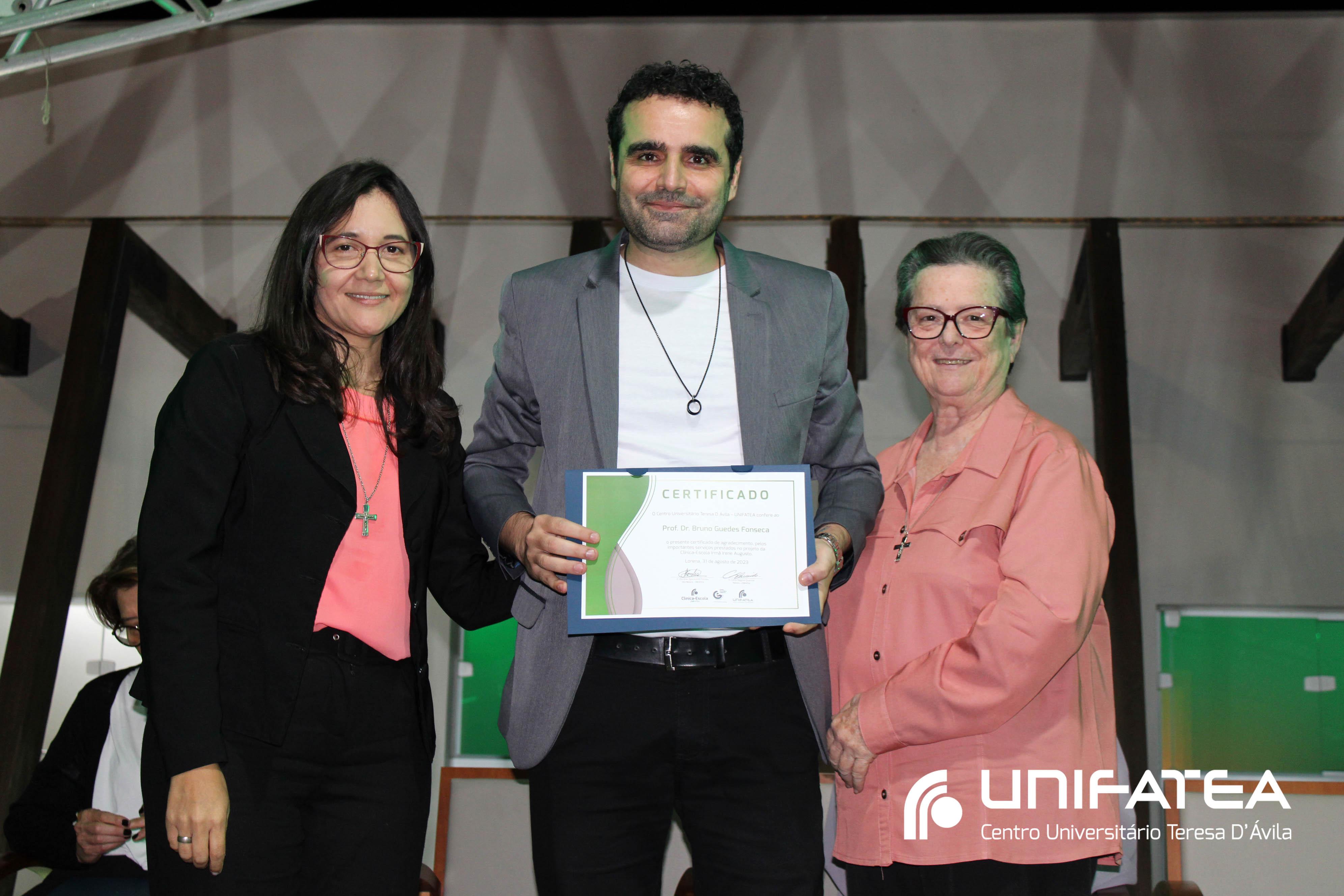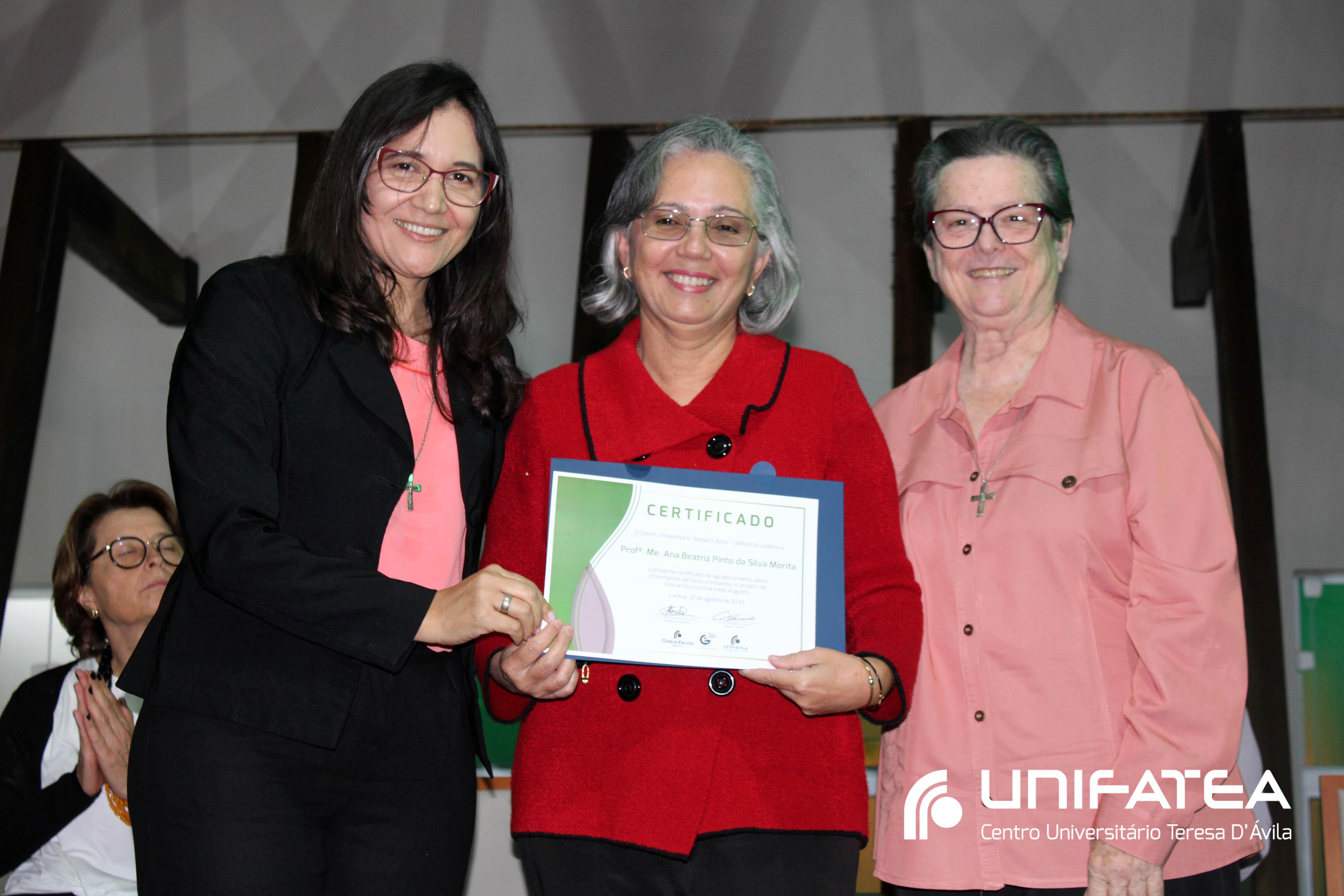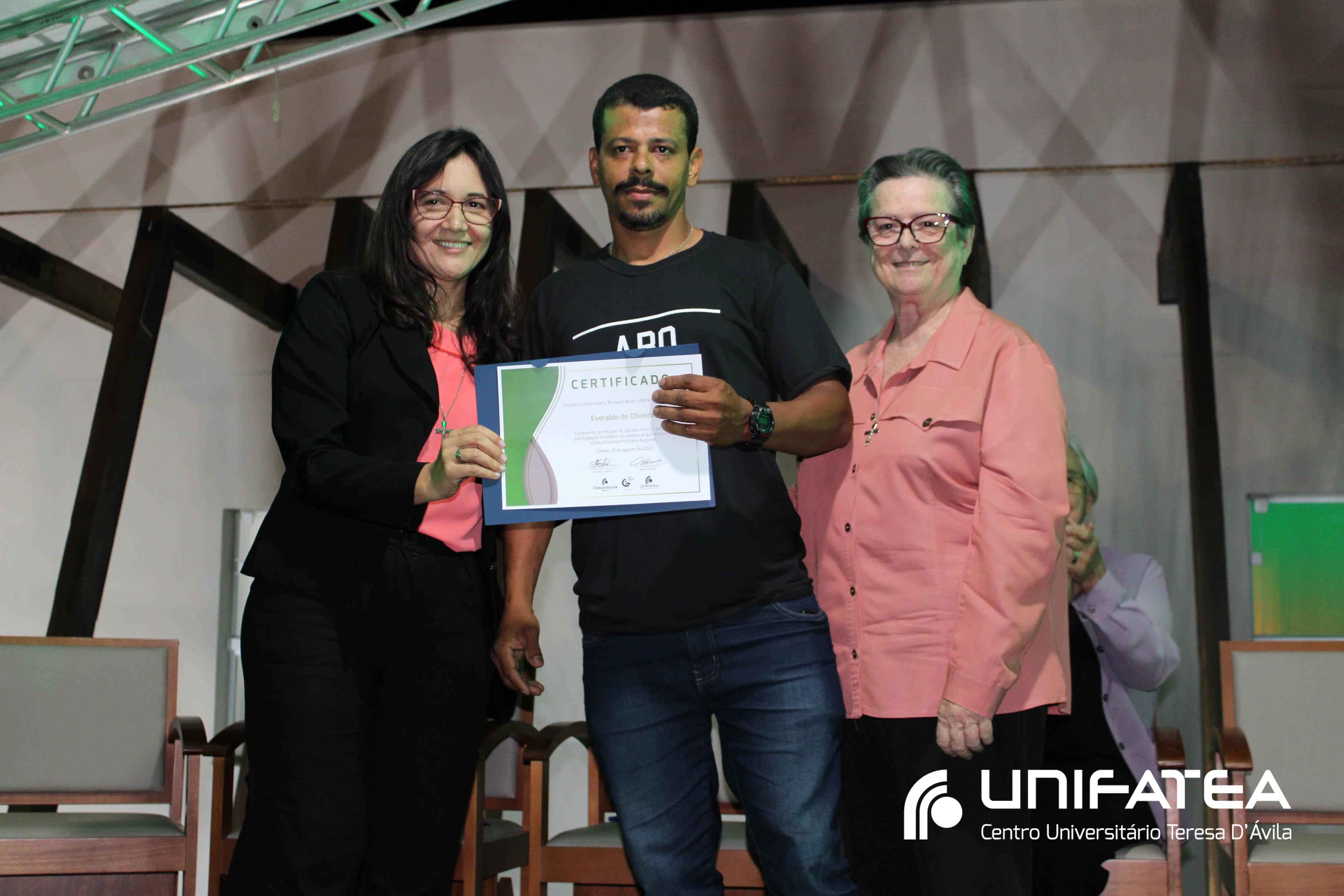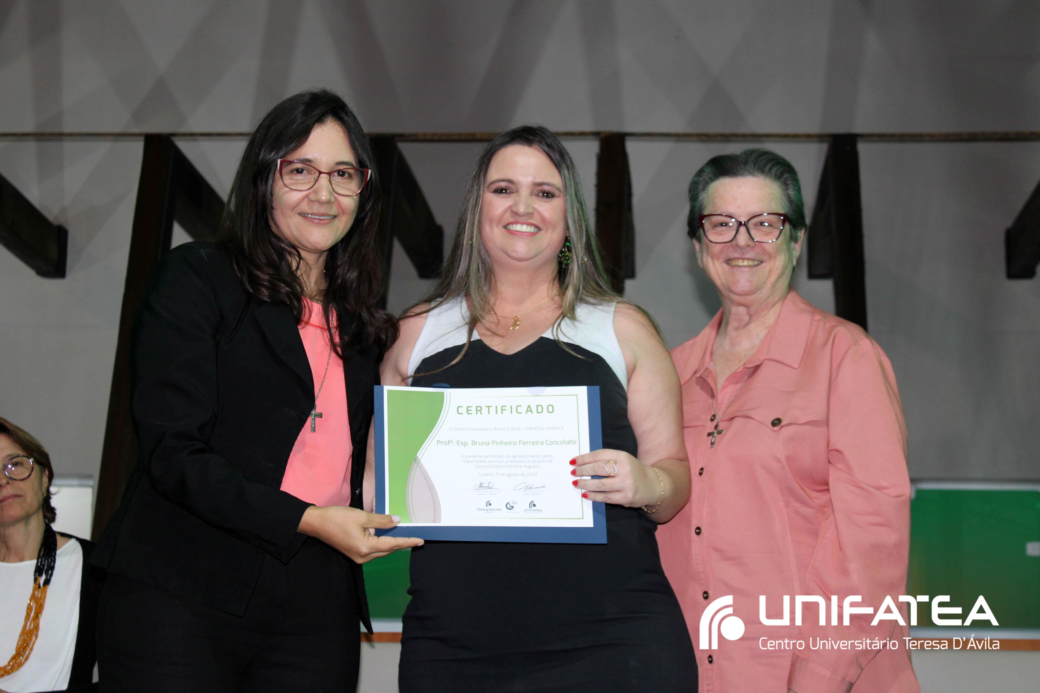 Foram entregues certificados Embaixadores da Clínica-escola para Sr. Sérgio Fortes, Sra. Nádia Meireles, Sra. Paola Geronimi; Certificados Embaixadores de Comunicação da Clínica-escola Irmã Irene Augusto e Parque Tecnológico Unifatea para Dra. Marilde Gonçalves de Souza Andrade – Rádio Mix FM e Sr. Eder Bilotta – Jornal Atos; Certificado Embaixador do Parque Tecnológico Unifatea para o empresário Jeremias Rodrigues.