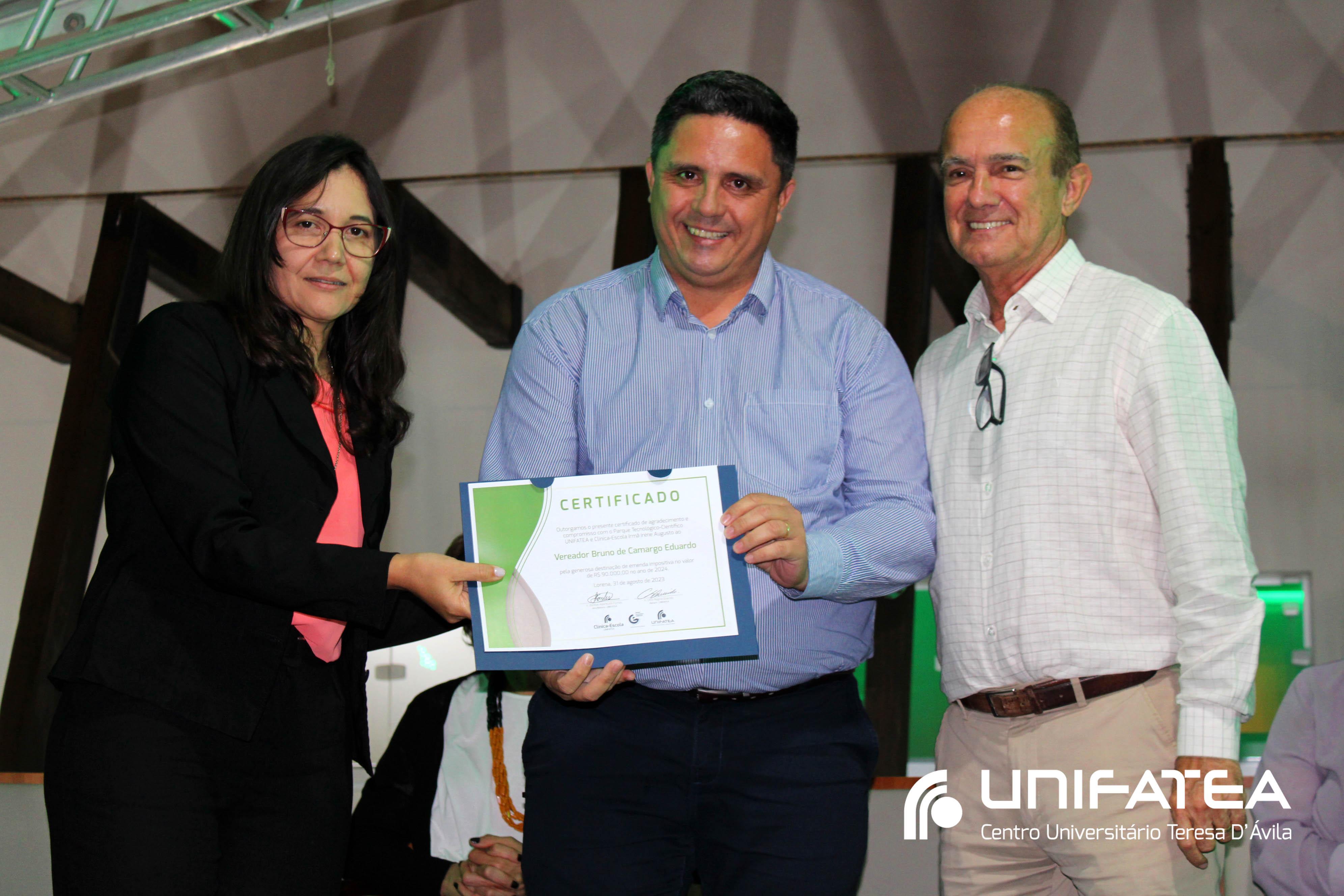 O Centro Universitário também antecipou os agradecimentos da intenção de destinação de recursos dos vereadores: Bruno Ribeiro, Wanessa Vieira, Adilsom Sampaio, Washington da Saúde, Bruno Camargo, Fábio Longuinho e Beto Pereira.