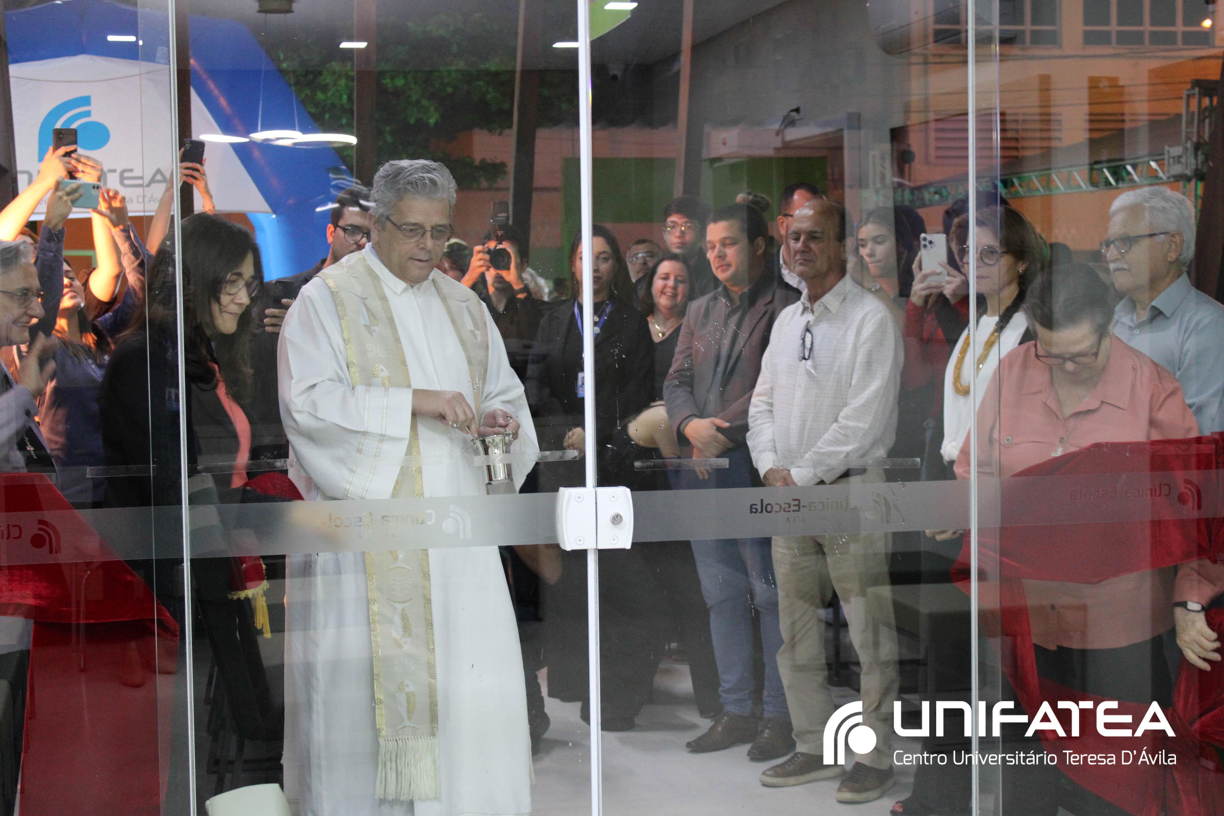 Após a bênção do espaço, os presentes se dirigiram para a visita ao espaço interno da Clínica-escola.