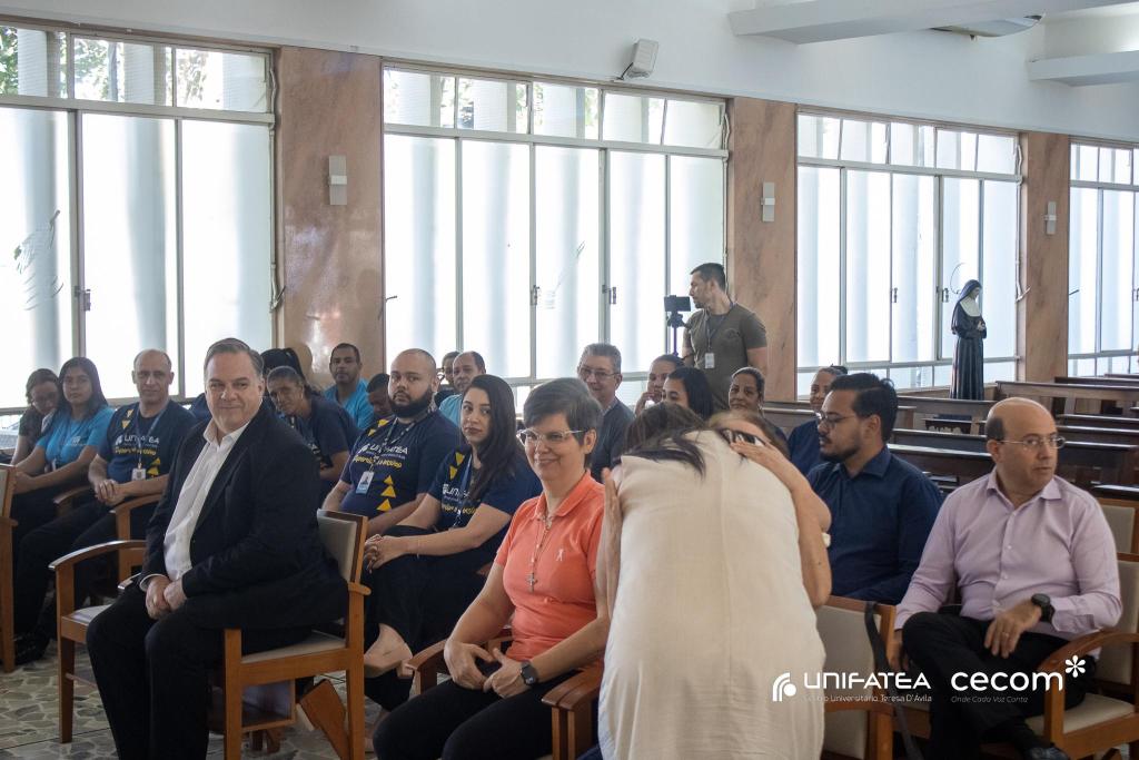 Com esperança e renovação, o UNIFATEA deu as boas-vindas nesta segunda-feira, 06 de janeiro, ao seu novo reitor, Prof. Carlos Miglinski, e à vice-reitora, Ir. Silvana Soares. A recepção, que ocorreu na capela da instituição, marcou o início de uma nova gestão, trazendo entusiasmo e otimismo para a comunidade acadêmica.