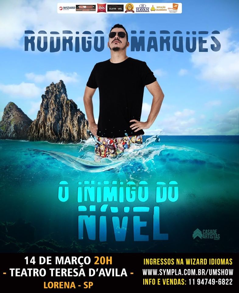 Às 20h, teremos o Standup Comedy com o comediante Rodrigo Marques do programa “A culpa é do Cabral”.
