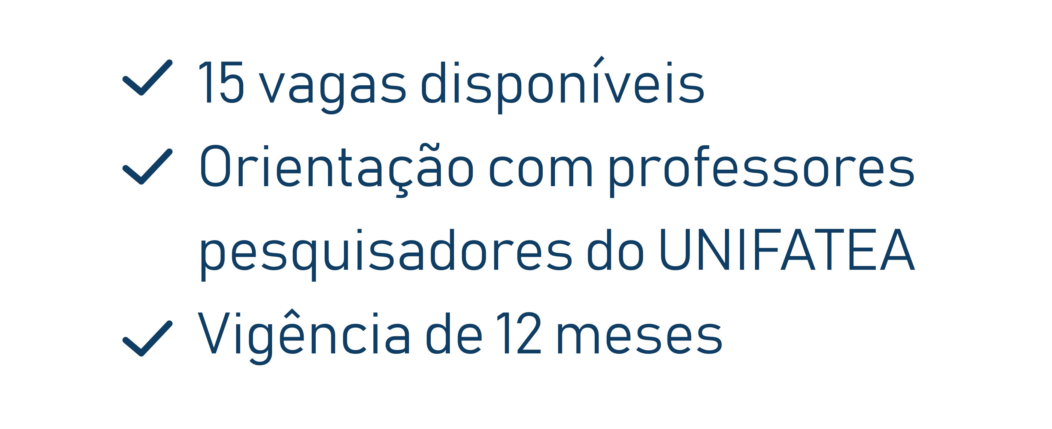 PROGRAMA DE INICIAÇÃO CIENTÍFICA 2026 Se você é estudantee quer dar os primeiros passosna pesquisa científica, participe! INSCRIÇÕES ABERTAS PROGRAMA DE INICIAÇÃO CIENTÍFICA 2026 Se você é estudantee quer dar osprimeiros passosna pesquisa científica,participe! INSCRIÇÕES ABERTAS De 27 de abril a 11 de maio De 27 de abril a 11 de maio Downloads disponíveis EDITAL - IC VOLUNTÁRIO 2026 ANEXO A – FICHA DE INSCRIÇÃO DO DISCENTE ANEXO B – TERMO DE ACEITE DO PROFESSOR ORIENTADOR ANEXO C – MODELO DE PROJETO DE PESQUISA UNIFATEA CENTRO UNIVERSITÁRIO TERESA D'ÁVILA Av. Peixoto de Castro, 539 – Vila CelesteCep: 12.606-580 – Lorena/SPTelefone: (12) 2124-2899 Você tem algum feedback, sugestão ou reclamação? Entre em contato com a nossa ouvidoria clicando aqui.
